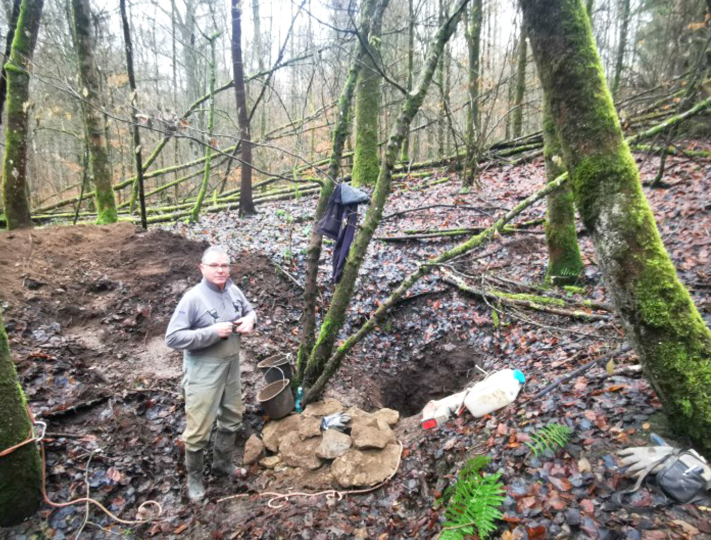konnte in 5 m Tiefe der Zugang zu einer Ost-West-Kluft geöffnet werden.