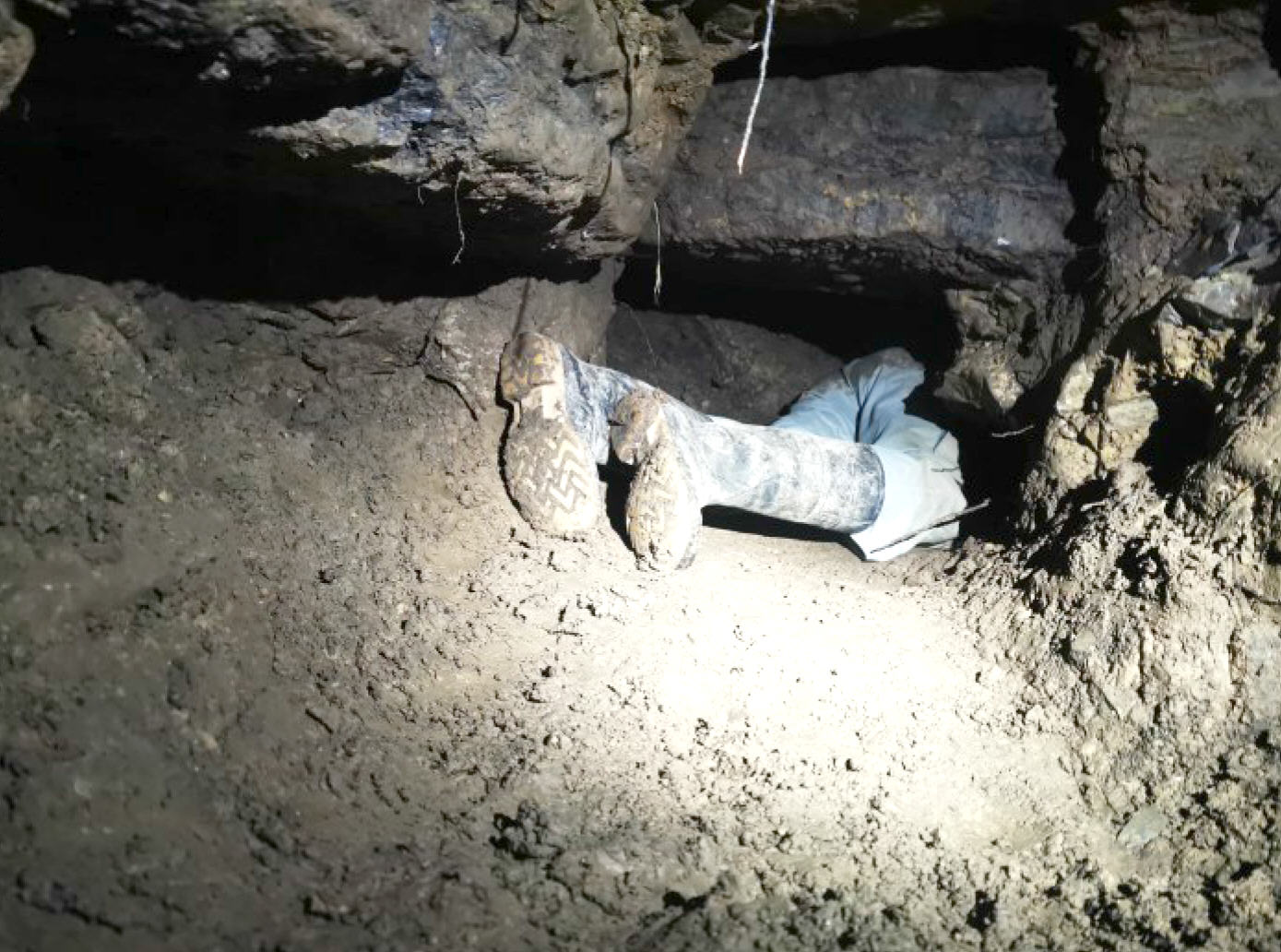 Nach 2 m wurde der Zugang zu einer quer verlaufende Schichtfuge mit Wasserzulauf