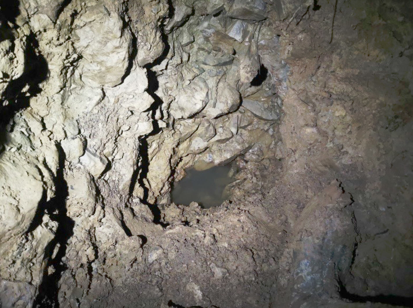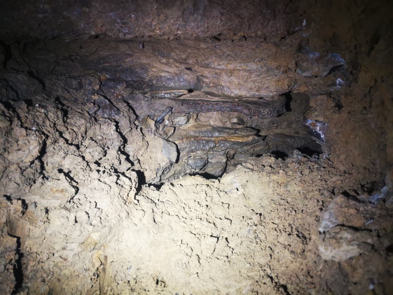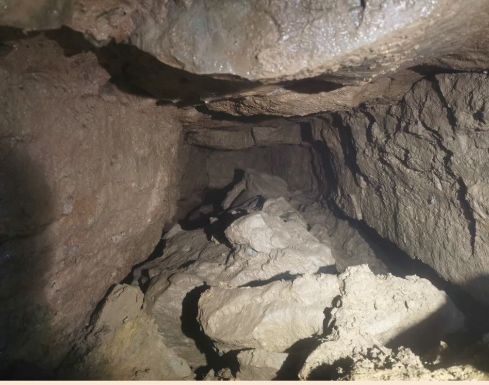 In dem dort nach Norden führenden Gangteil konnte erstes Versturzmaterial