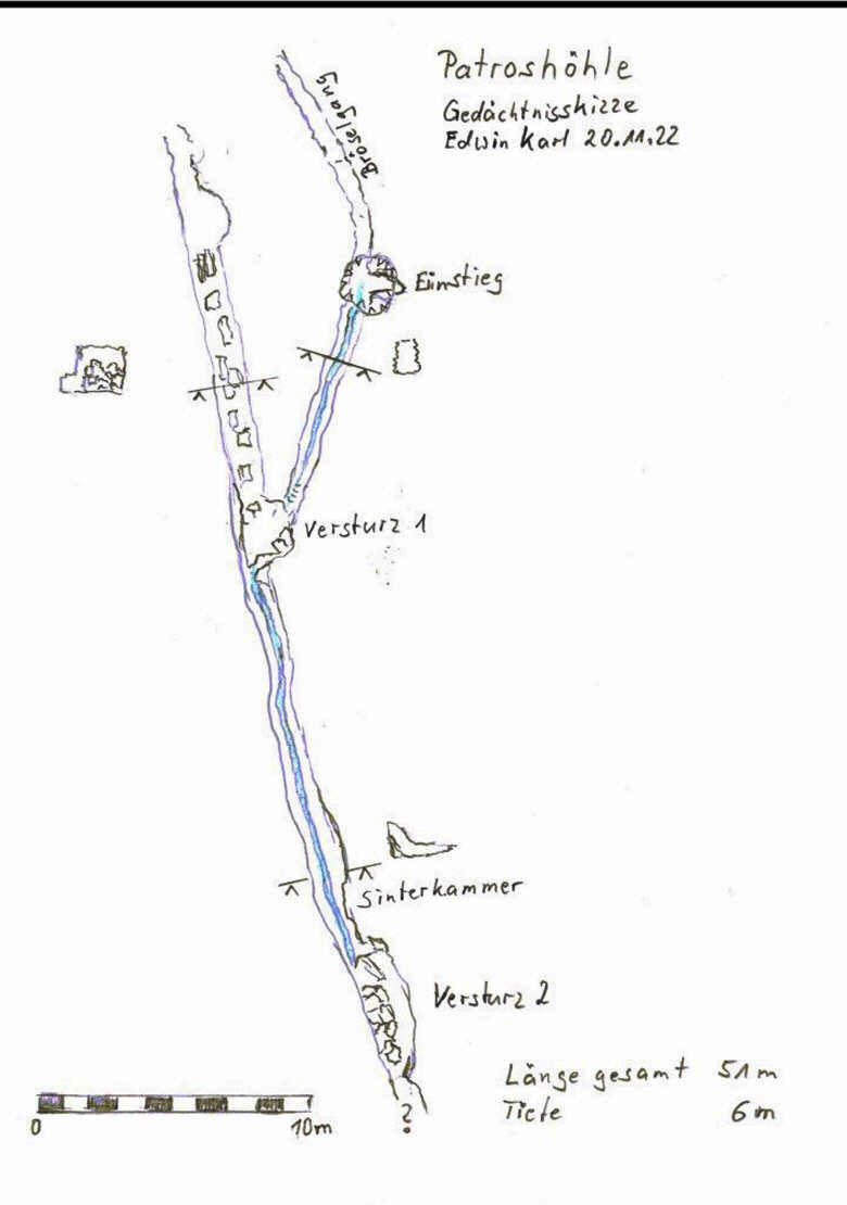 Bei 2 Befahrungen der Patroshöhle wurde der nach Norden führende