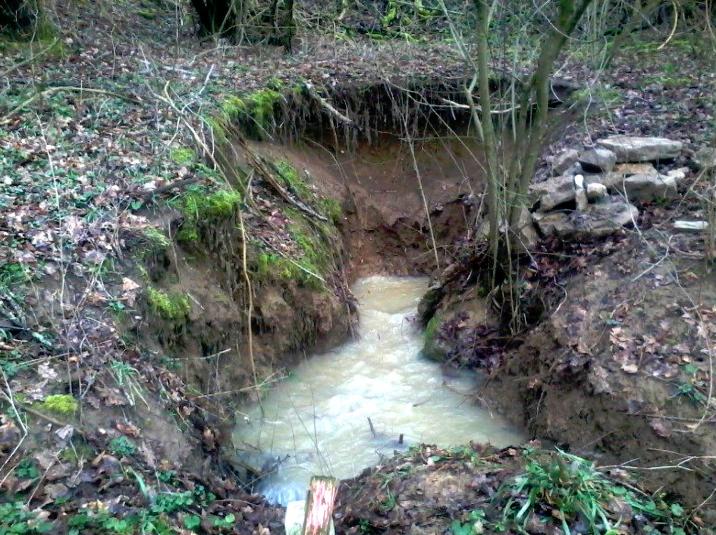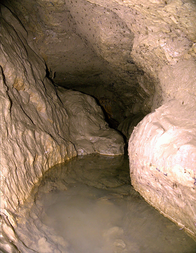 zur Estavelle im Notgang, der kurz zuvor wasserführend gewesen sein muss,