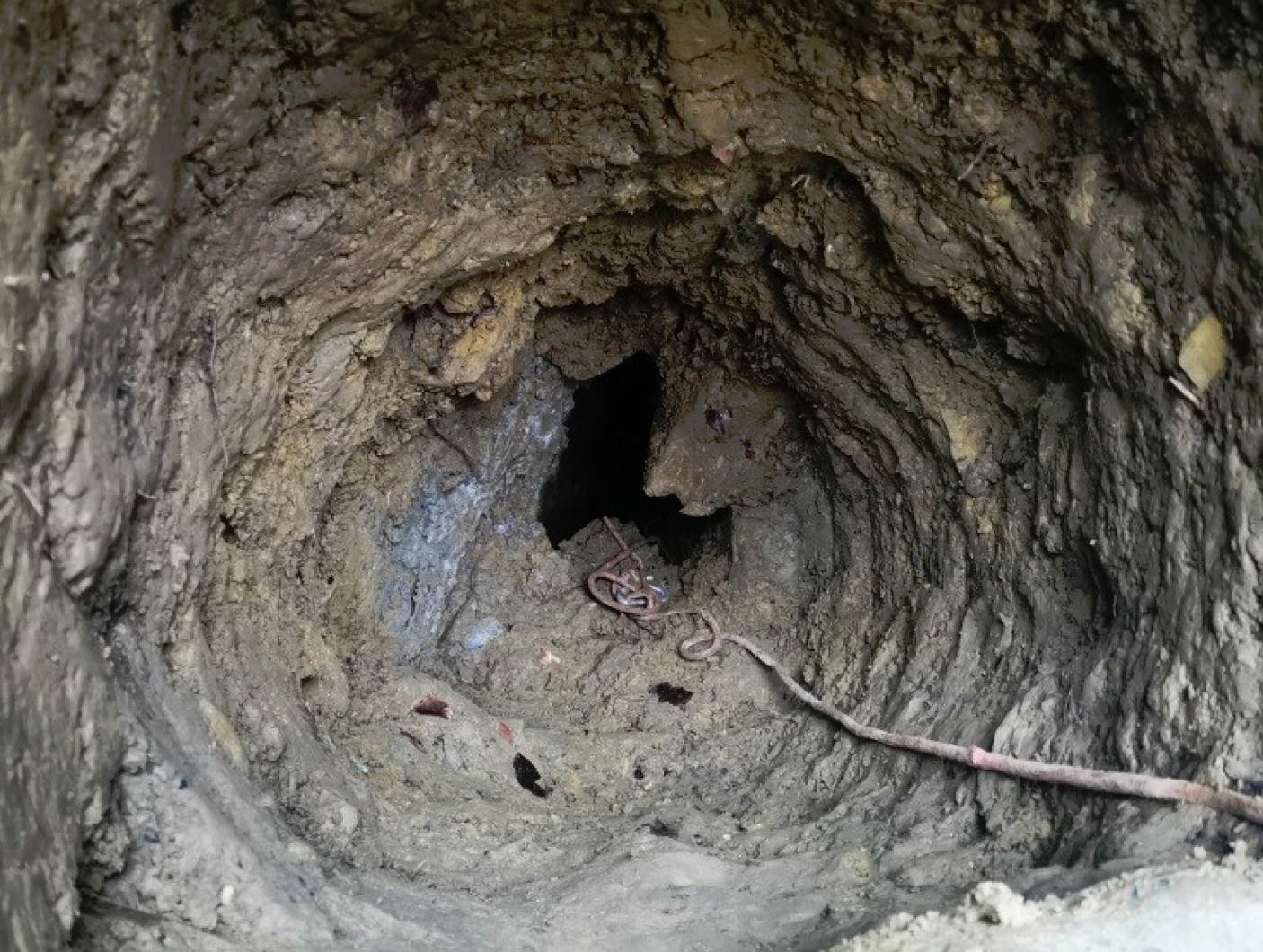 Forschungsaktivitäten. Im Einstiegsschacht liegendes Material wurde